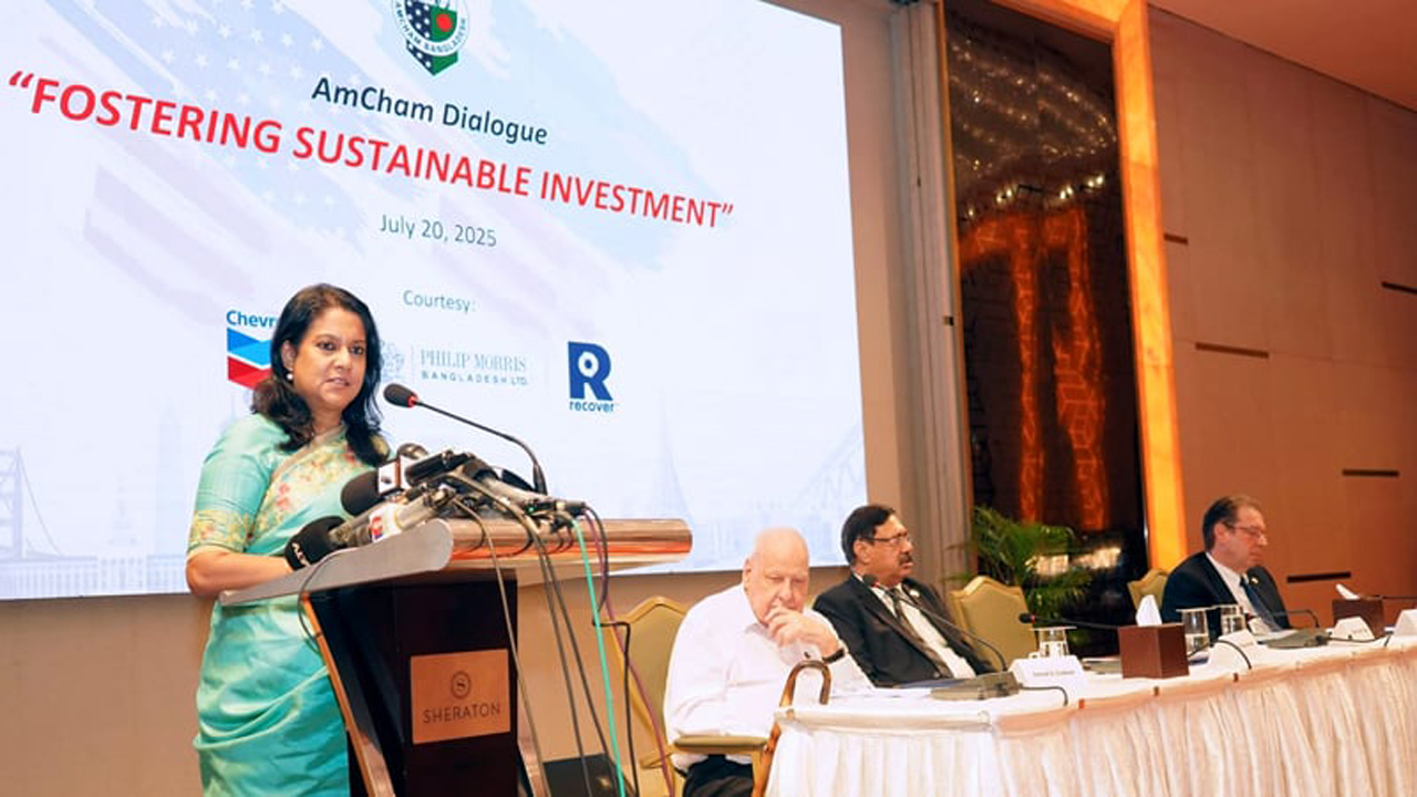 রোববার (২০ জুলাই) রাজধানীর একটি হোটেলে আমেরিকান চেম্বার অব কমার্স ইন বাংলাদেশ (অ্যামচ্যাম) আয়োজিত ‘অ্যামচ্যাম ডায়লগ অন ফস্টারিং সাসটেইনেবল ইনভেস্টমেন্ট’ শীর্ষক সংলাপে প্রধান অতিথির বক্তব্যে তিনি এ কথা বলেন।
