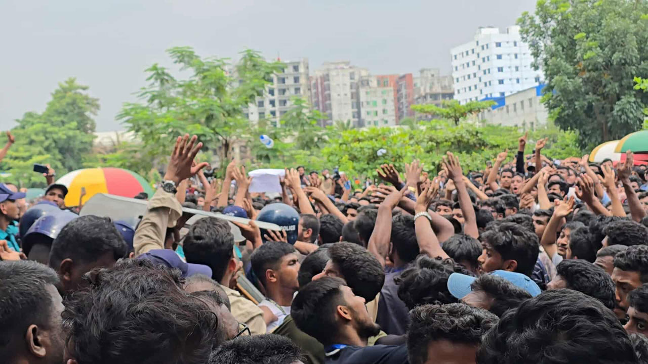 এদিকে উপদেষ্টাদের প্রটোকল ডিউটিতে থাকা আইনশৃঙ্খলা রক্ষাকারী বাহিনী সদস্যদের লক্ষ্য করে বিক্ষুব্ধ শিক্ষার্থীরা জুতা ও পানির বোতল ছুড়েছেন।