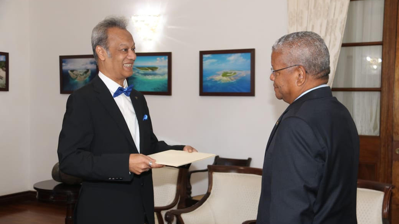 সেশেলসের রাষ্ট্রপতির কাছে বাংলাদেশের হাইকমিশনারের পরিচয়পত্র পেশ