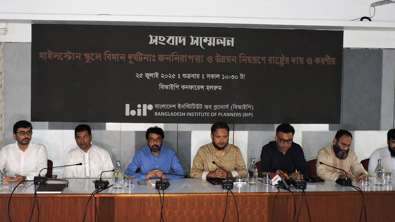 শুক্রবার (২৫ জুলাই) বাংলামটরে বাংলাদেশ ইনস্টিটিউট অব প্ল্যানার্সের কনফারেন্স রুমে ‘মাইলস্টোন স্কুলে বিমান দুর্ঘটনা : জননিরাপত্তা এবং উন্নয়ন নিয়ন্ত্রণে রাষ্ট্রের দায় ও করণীয়’ শীর্ষক সংবাদ সম্মেলনে এসব প্রস্তাবনা তুলে ধরা হয়।
