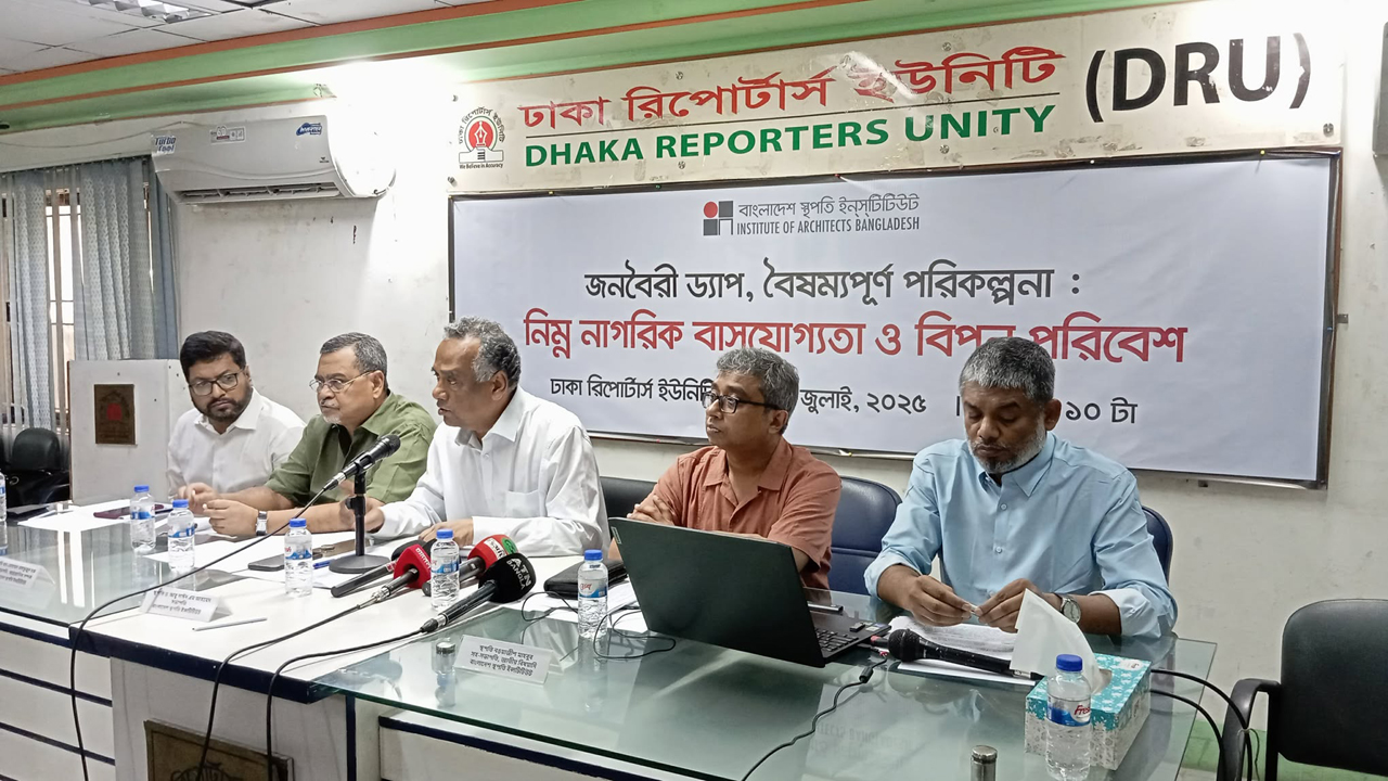 রোববার (২৭ জুলাই) ঢাকা রিপোর্টার্স ইউনিটির সাগর-রুনি হলে আয়োজিত এক সংবাদ সম্মেলন থেকে এসব দাবি তুলে ধরেন বাংলাদেশ স্থপতি ইনস্টিটিউটের সভাপতি স্থপতি আবু সাইদ এম আহমেদ।