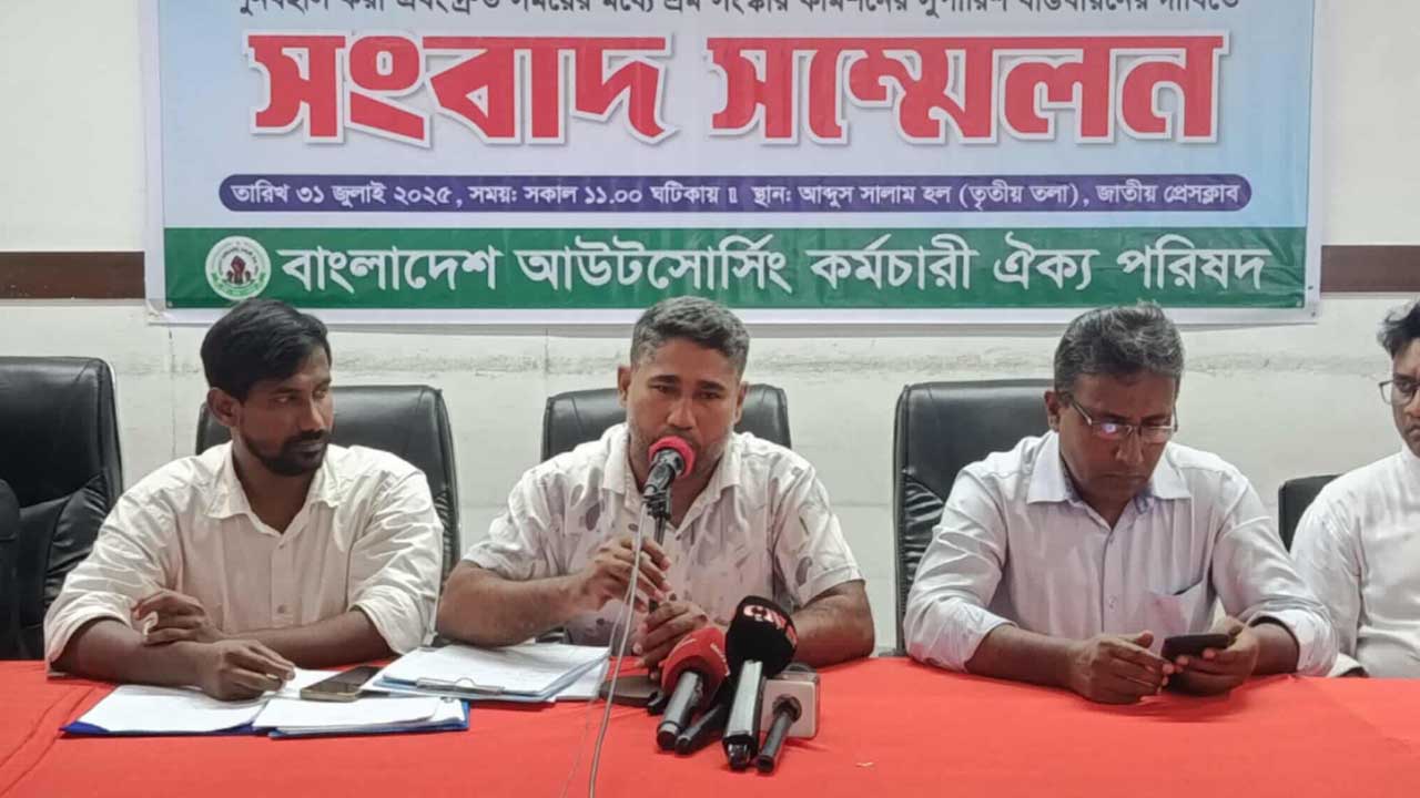 বাংলাদেশের সব সরকারি, আধাসরকারি, স্বায়ত্বশাসিত প্রতিষ্ঠান, দপ্তর, অধিদপ্তর ও পরিদপ্তরে আউটসোর্সিং, দৈনিক মজুরিভিত্তিক এবং প্রকল্পে কর্মরত শ্রমজীবীদের ন্যায্যঅধিকার নিশ্চিতে নীতিমালা সংশোধনের দাবি জানিয়েছে বাংলাদেশ আউটসোর্সিং কর্মচারী ঐক্য পরিষদ।