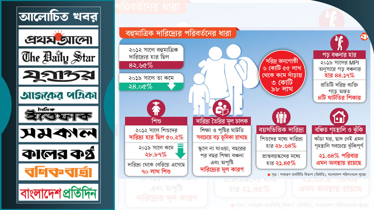 বিদ্যুৎ এসেছে, ঘরে মোবাইল ফোনও আছে, কিন্তু সন্তানকে পাঠানো যাচ্ছে না স্কুলে। রোগ হলে হাসপাতালে যাওয়া দূরের কথা, বিশুদ্ধ পানি বা শৌচাগার ব্যবস্থাও নেই। এমন জীবনযাপনই বহুমাত্রিক দারিদ্র্যের বাস্তব রূপ। আর এমন অবস্থায় বাস করছে বাংলাদেশের অন্তত চার কোটি মানুষ।