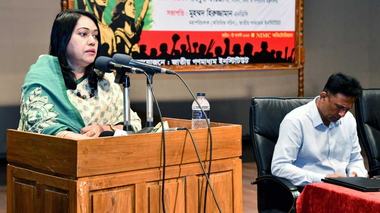 জাতীয় গণমাধ্যম ইনস্টিটিউটের মহাপরিচালক মুহম্মদ হিরুজ্জামানের সভাপতিত্বে আলোচনা সভায় আরও বক্তব্য দেন গণযোগাযোগ অধিদপ্তরের মহাপরিচালক ফায়জুল হক, বাংলাদেশ বেতারের মহাপরিচালক এ এস এম জাহীদ এবং চলচ্চিত্র ও প্রকাশনা অধিদপ্তরের মহাপরিচালক খালেদা বেগম।
