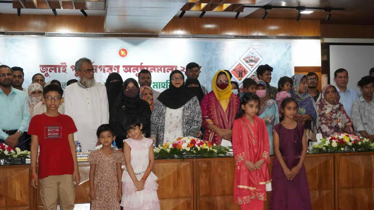 অনুষ্ঠানে জুলাই আন্দোলনে শহীদ হওয়া ১৭টি পরিবারকে মোট ২৫ লাখ টাকার চেক দেওয়া হয়।