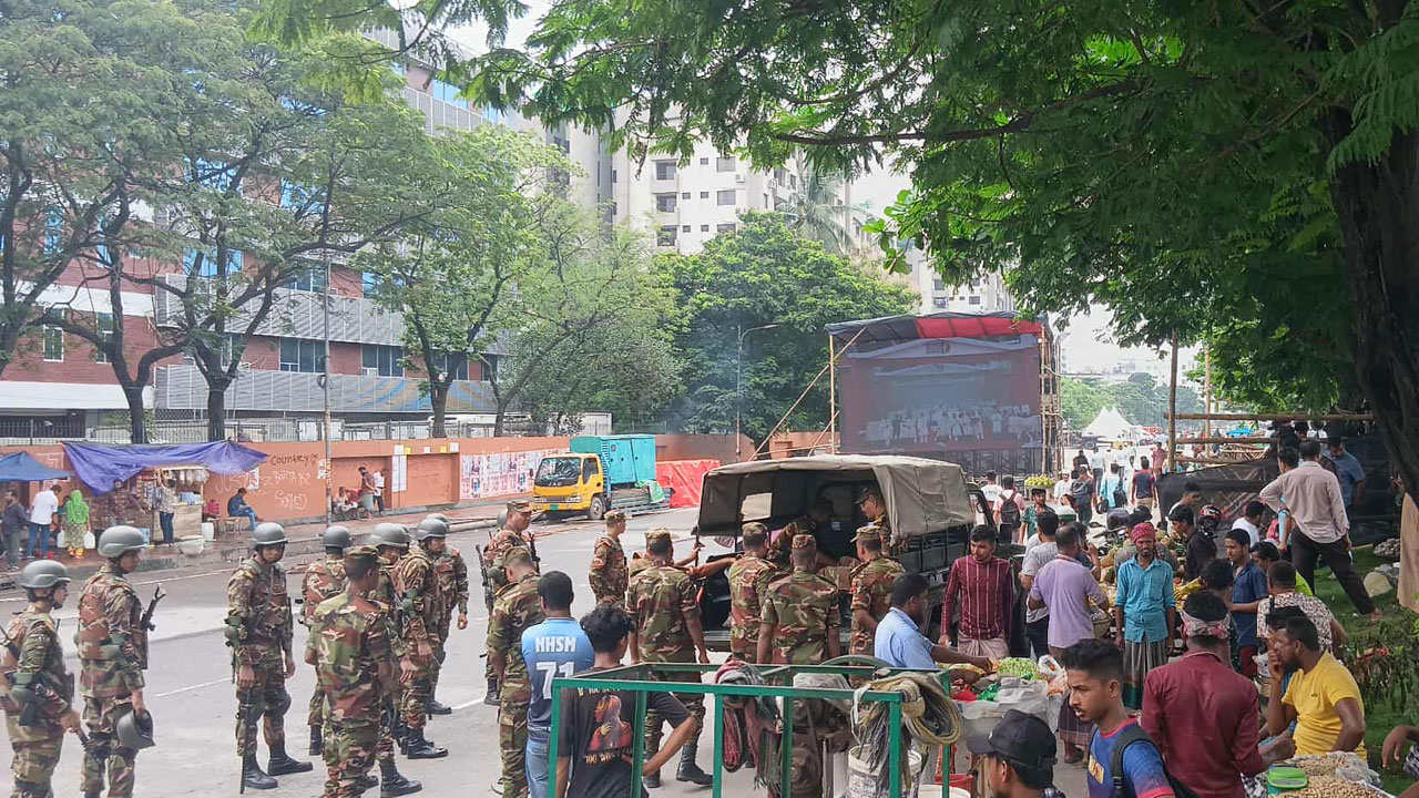 সোমবার (৫ আগস্ট) রাজধানীর জাতীয় সংসদ ভবনের সামনে মানিক মিয়া এভিনিউ ঘুরে এমন চিত্র দেখা গেছে।