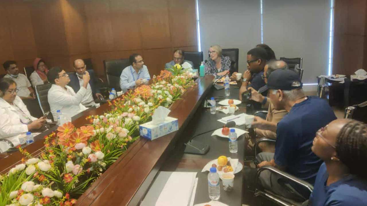 জাতীয় বার্ন ও প্লাস্টিক সার্জারি ইনস্টিটিউটের আবাসিক সার্জন ডা. শাওন বিন রহমান বলেন, উত্তরায় মাইলস্টোন কলেজে যুদ্ধবিমান বিধ্বস্ত হওয়ার ঘটনায় আহতদের দেখতে ব্রিটিশ হাইকমিশনারসহ নয়জনের একটি টিম এখানে এসেছে। বর্তমানে হাসপাতালের ভারপ্রাপ্ত পরিচালকসহ বৈঠক চলছে।