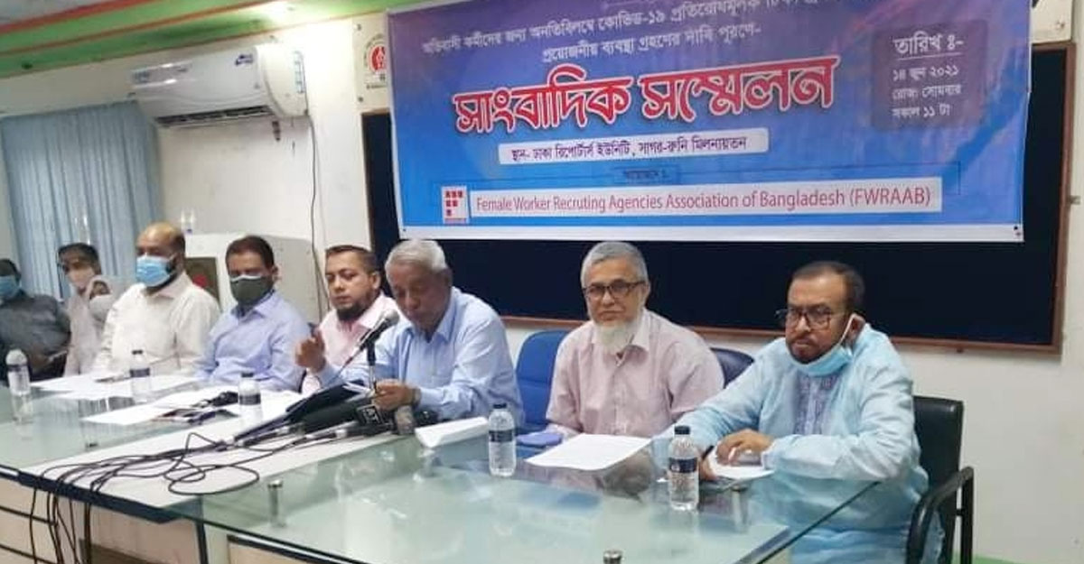 অভিবাসী কর্মীদের জন্য দ্রুত করোনাভাইরাসের টিকা আমদানি এবং প্রদানে প্রয়োজনীয় ব্যবস্থা গ্রহণসহ ২ দফা দাবি জানিয়েছে ফিমেল ওয়ার্কার রিক্রুটিং এজেন্সিস অ্যাসোসিয়েশন অব বাংলাদেশ (এফডাব্লিউআরএএবি)।