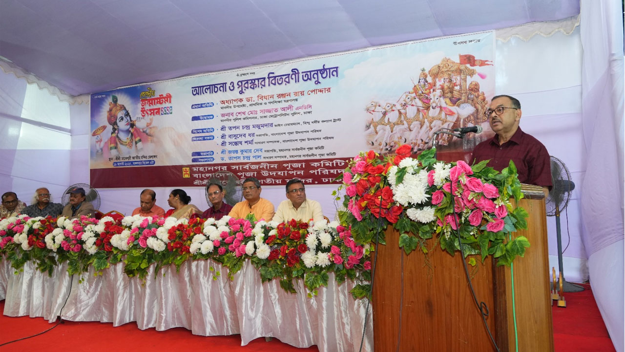 আজ (মঙ্গলবার) ঢাকেশ্বরী জাতীয় মন্দির মেলাঙ্গনে কেন্দ্রীয় জন্মাষ্টমী উৎসব-২০২৫ উপলক্ষে আয়োজিত এক আলোচনা সভা ও পুরস্কার বিতরণী অনুষ্ঠানে তিনি এ কথা বলেন।