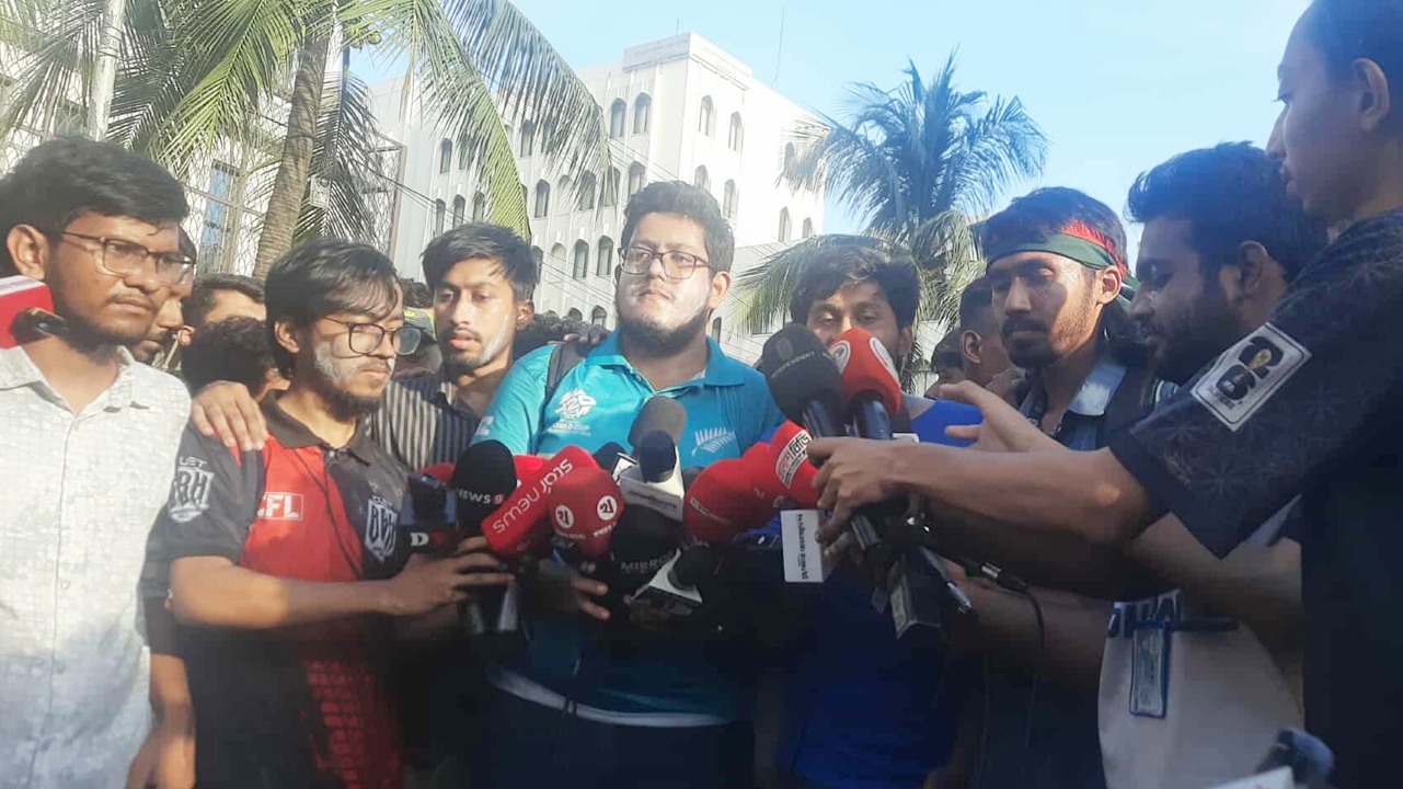 বুধবার (২৭ আগস্ট) বিকেলে রাজধানীর ইন্টারকন্টিনেন্টাল হোটেলের সামনে এক সংবাদ সম্মেলনে শিক্ষার্থী প্রতিনিধি জুবায়ের আহমেদ তাদের এ সিদ্ধান্তের কথা জানান। এ সময় তিনি মোট পাঁচটি দাবি ঘোষণা করেন।