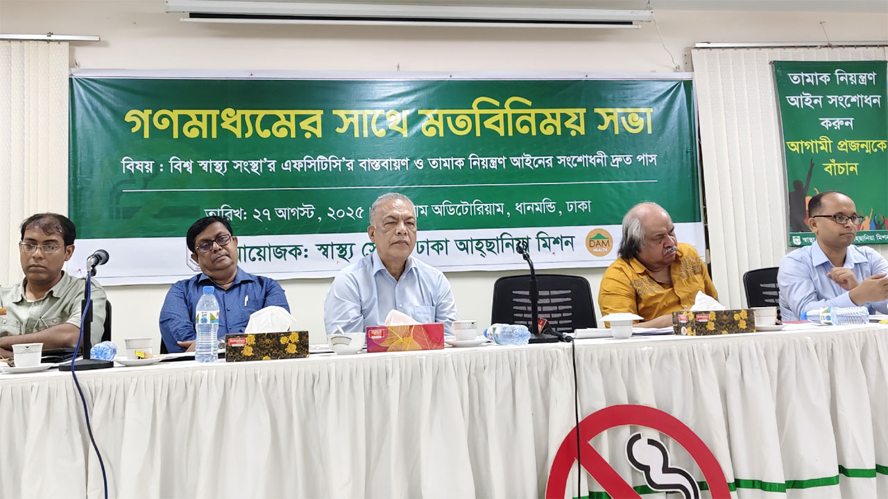 বুধবার (২৭ আগস্ট) ঢাকা আহছানিয়া মিশন আয়োজিত ‘বিশ্ব স্বাস্থ্য সংস্থার এফসিটিসির বাস্তবায়ন ও তামাক নিয়ন্ত্রণ আইনের সংশোধনী দ্রুত পাস’ শীর্ষক গণমাধ্যম কর্মীদের সঙ্গে মতবিনিময় সভায় এই দাবি জানানো হয়।