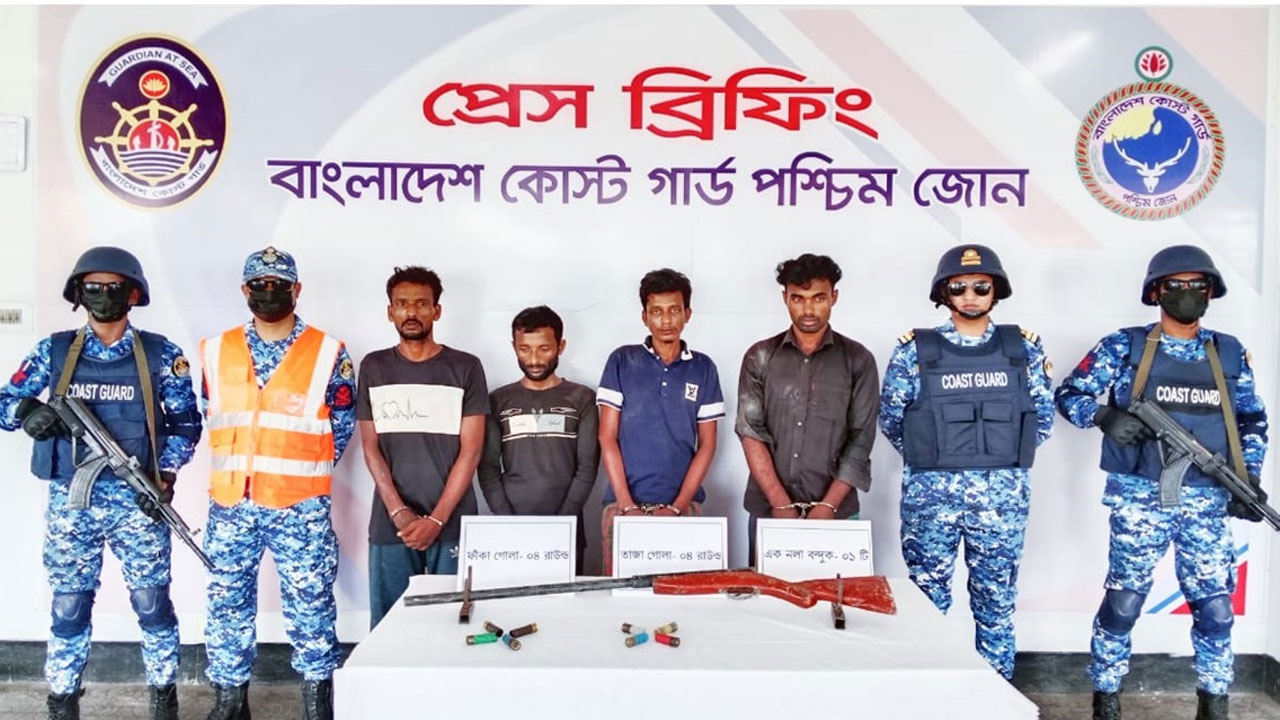 সুন্দরবন ও খুলনায় পৃথক অভিযানে দেশীয় আগ্নেয়াস্ত্র, গোলাবারুদ ও মাদকসহ ছয়জনকে আটক করেছে কোস্ট গার্ড।