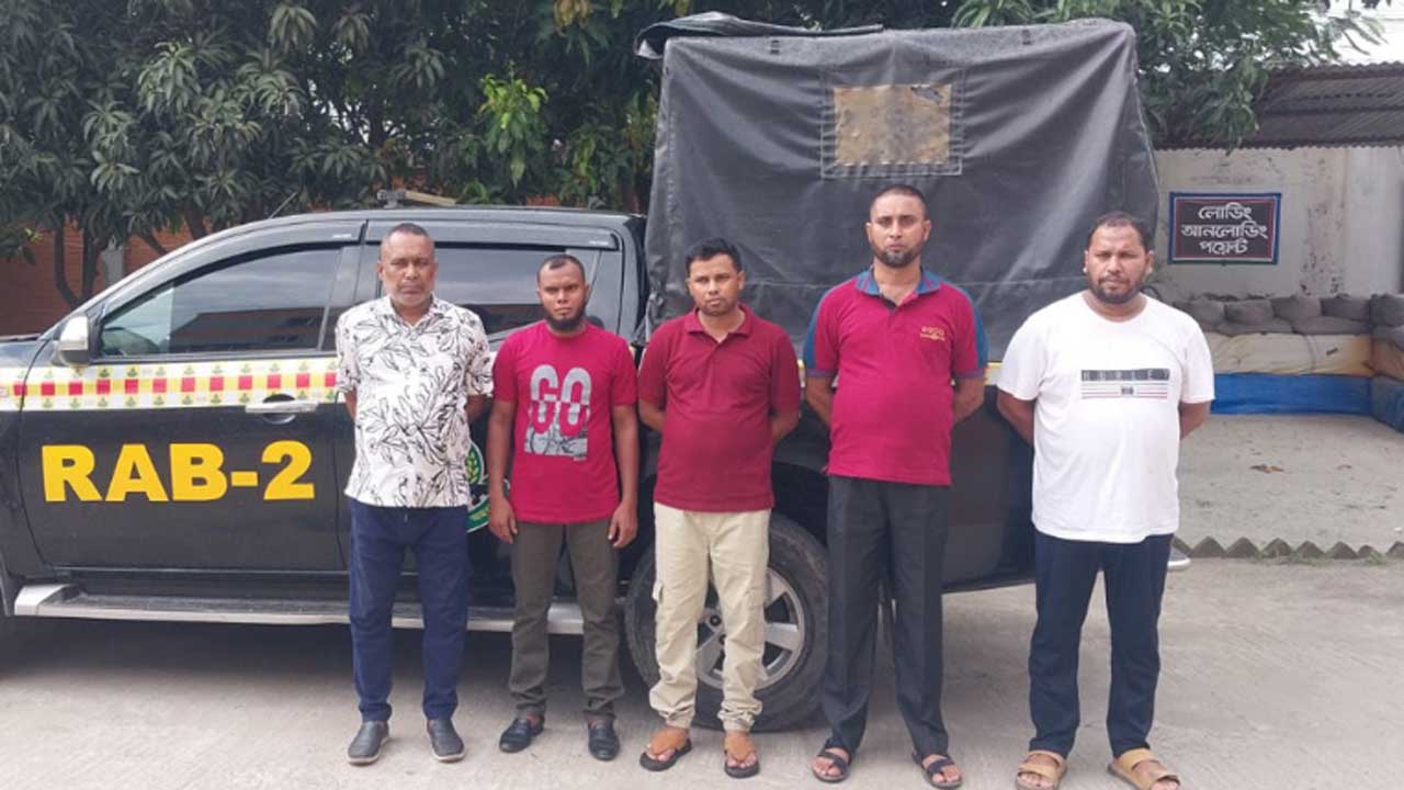 রোববার (৭ সেপ্টেম্বর) দিবাগত রাতে উত্তরা পশ্চিম থানা এলাকার ১১ নম্বর সেক্টরে অভিযান চালিয়ে তাদের গ্রেপ্তার করা হয়। গ্রেপ্তাররা হলেন- চক্রের প্রধান আমিনুল ইসলাম, সহযোগী আব্দুল হাকিম, নূর ইসলাম, আসাদুজ্জামান ও শাহরিয়ার শেখ মুরাদ।