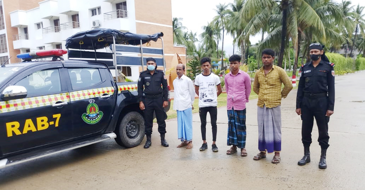 বুধবার (১৬ জুন) র্যাব-৭ এর সহকারী পরিচালক (মিডিয়া) মো. নুরুল আবছার স্বাক্ষরিত এক প্রেস বিজ্ঞপ্তিতে এ তথ্য জানানো হয়। যাদের আটক করা হয়েছে তারা হলেন- মো. জসিম উদ্দিন (২৭), মো. নুরুল আজিম (২৮), মো. জাবের আহাম্মদ (৪৮) ও মোহাম্মদ নবী (২২)।