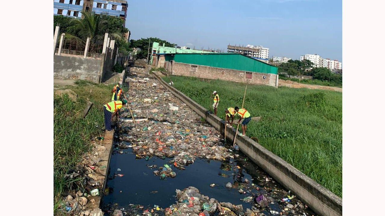 জলাবদ্ধতা নিরসন ও পানি প্রবাহ ঠিক করতে খাল পরিষ্কার কর্মসূচি পালন করছে ঢাকা উত্তর সিটি কর্পোরেশন (ডিএনসিসি)।