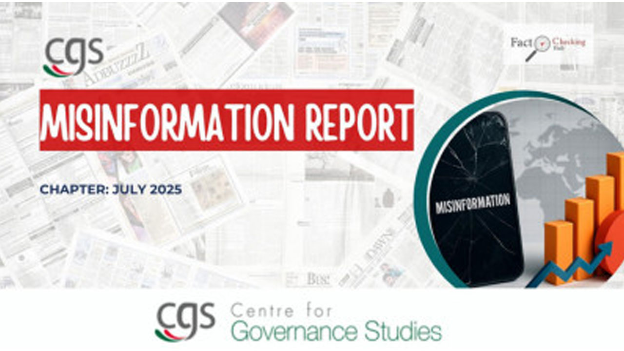 সেন্টার ফর গভর্ন্যান্স স্টাডিজ (সিজিএস) চলতি বছরের আগস্ট মাসে ছড়ানো গুজব ও ভুয়া তথ্য নিয়ে একটি প্রতিবেদন প্রকাশ করেছে। এই মাসে মোট ৩৪০টি ভুয়া তথ্য শনাক্ত করেছে প্রতিষ্ঠানটি। বিষয়ভিত্তিক ভুয়া তথ্যের ঘটনার মধ্যে ২৬৮টি গুজব ও ভুয়া তথ্যই ছিল রাজনীতি বিষয়ক।