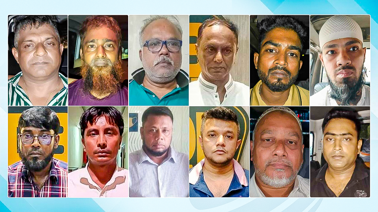 গ্রেপ্তাররা হলেন- বরগুনা জেলার বেতাগী উপজেলার ৫নং বুড়া মজুমদার ইউনিয়ন আওয়ামী লীগের সাবেক সাধারণ সম্পাদক মো. ইউনুছ আলী ওরফে ইলিয়াস (৫২), গাজীপুর মহানগরের আওয়ামী যুবলীগ নেতা শামীম ওসমান (৩৭), ২৬নং ওয়ার্ড ওয়েস্ট অ্যান্ড হাই স্কুল ইউনিট ঢাকা মহানগর দক্ষিণ আওয়ামী লীগের সাধারণ সম্পাদক মো. মাহমুদ দেওয়ান শিপু (৩৬), ২৬নং ওয়ার্ড, ওয়েস্ট অ্যান্ড হাই স্কুল ইউনিট ঢাকা মহানগর দক্ষিণ আওয়ামী লীগের দপ্তর সম্পাদক জামিল হোসেন (৩৫), আওয়ামী যুবলীগের কেন্দ্রীয় কার্যনির্বাহী কমিটির সাবেক মুক্তিযুদ্ধ বিষয়ক সম্পাদক এবং ময়মনসিংহ জেলার গফরগাঁও পৌরসভার সাবেক মেয়র অ্যাডভোকেট কায়সার আহম্মদ (৫৭), ঢাকা উত্তর সিটি কর্পোরেশন ৫৩নং ওয়ার্ড কৃষক লীগের সহ সভাপতি মো. সোলেমান (৪৪), ঢাকা মহানগর দক্ষিণ ৬৭নং ওয়ার্ড আওয়ামী স্বেচ্ছাসেবক লীগের সাবেক সভাপতি ইকরামুল হাসান রুবেল (৩৪), টাঙ্গাইল জেলা যুবলীগের সাবেক সাধারণ সম্পাদক, ছাত্রলীগের সাবেক যুগ্ম আহ্বায়ক, বাসাইল থানা আওয়ামী লীগের সাবেক সভাপতি এবং বাসাইল উপজেলার চেয়ারম্যান কাজী অলিদ ইসলাম (৫৪), ক্যান্টনমেন্ট থানার বারনটেক ইউনিটের শ্রমিক লীগের সভাপতি ও সম্পাদক মোহাম্মদ খাইরুল ইসলাম ওরফে জুয়েল খাঁ (৪৭), ঢাকা মহানগর ৩৫নং ওয়ার্ড ছাত্রলীগের সিনিয়র সহ সভাপতি সজিব খান (৩৩), ঢাকা মহানগর দারুসসালাম থানা ৬নং ইউনিট ও ৯নং ওয়ার্ড আওয়ামী লীগের সাধারণ সম্পাদক আসলাম খান (৪৯) ও কালিয়াকৈর উপজেলা যুবলীগের সভাপতি হিরু মিয়া (৫৬)।