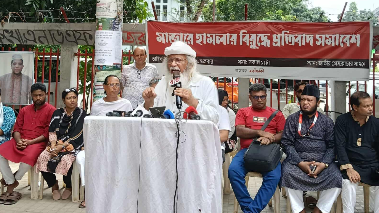 শুক্রবার (১৯ সেপ্টেম্বর) জাতীয় প্রেস ক্লাবের সামনে ভাববৈঠকী কর্তৃক মাজারে হামলার বিরুদ্ধে আয়োজিত এক প্রতিবাদ সমাবেশে তিনি এসব কথা বলেন।