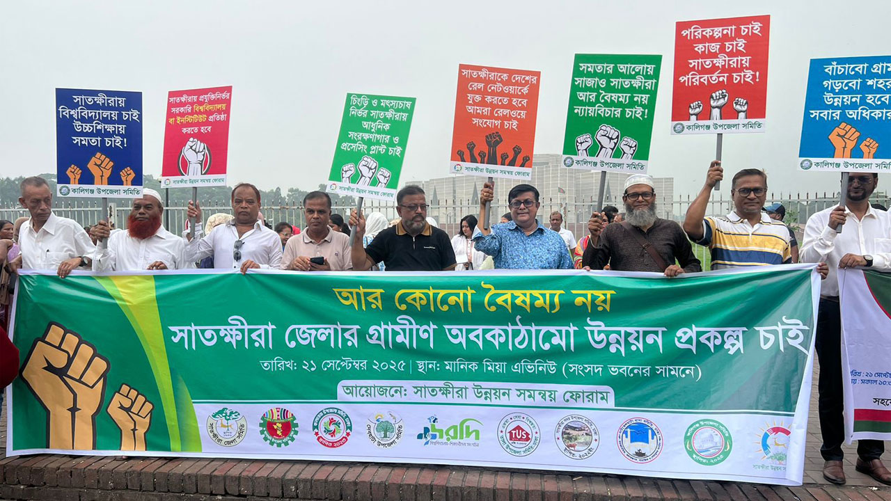 বক্তারা বলেন, সাতক্ষীরা জেলা বাংলাদেশের অন্যতম সম্ভাবনাময় ও অর্থনৈতিকভাবে গুরুত্বপূর্ণ জেলা, যা জাতীয় রাজস্বে গুরুত্বপূর্ণ অবদান রাখে। তবুও বিগত ১৭ বছর ধরে এই জেলা কোনো উল্লেখযোগ্য উন্নয়ন প্রকল্পের আওতায় আসেনি। দেশের অন্যতম প্রাকৃতিক ঐতিহ্য সুন্দরবন সাতক্ষীরায় অবস্থিত হওয়ায় প্রতিবছর লাখ লাখ পর্যটক এ জেলায় আগমন করেন। কিন্তু যোগাযোগ অবকাঠামোর করুণ দশা, সুপেয় পানির সংকট, শিক্ষা ও স্বাস্থ্যখাতের দুরবস্থা এবং অবহেলার কারণে সাধারণ মানুষ কাঙ্ক্ষিত সেবা থেকে বঞ্চিত হচ্ছে। খেলাধুলার জন্য কোনো ক্রীড়া কমপ্লেক্স নেই। রেলযোগাযোগ ব্যবস্থা নেই, ফুড প্রসেসিং ব্যবস্থাও নেই। তাই সরকারের কাছে আমরা আবেদন জানাচ্ছি সাতক্ষীরা জেলা গ্রামীণ অবকাঠামো উন্নয়ন প্রকল্প গ্রহণ ও বাস্তবায়ন নিশ্চিত করতে হবে।