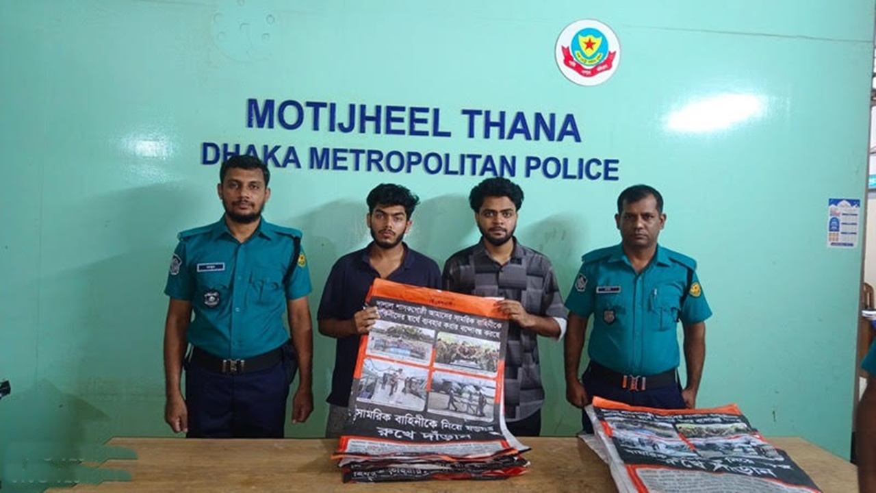 মঙ্গলবার (২৩ সেপ্টেম্বর) সকাল ৬টা ৩০ মিনিটে মতিঝিলের সিটি সেন্টারের সামনে মেট্রোরেলের নিচ থেকে তাদের গ্রেপ্তার করা হয়।