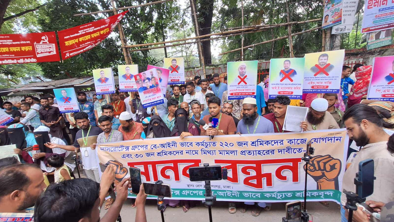 এসরোটেক্স গ্রুপের বেআইনিভাবে কর্মচ্যুত ২২০ জন শ্রমিকের কাজে যোগদান এবং ৩০ জন শ্রমিকের নামে মিথ্যা মামলা প্রত্যাহারের দাবি জানিয়েছে ভুক্তভোগী শ্রমিকরা।