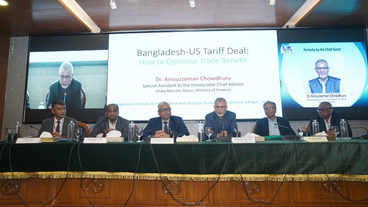 বুধবার (২৪ সেপ্টেম্বর) বাংলাদেশ ইনস্টিটিউট অব ইন্টারন্যাশনাল অ্যান্ড স্ট্র্যাটেজিক স্টাডিজ (বিআইআইএসএস) ‘বাংলাদেশ-মার্কিন ট্যারিফ চুক্তি : কীভাবে বাণিজ্য সুবিধা হতে পারে’ শীর্ষক এক সেমিনারে এই মন্তব্য করেন প্রধান উপদেষ্টার বিশেষ সহকারী।
