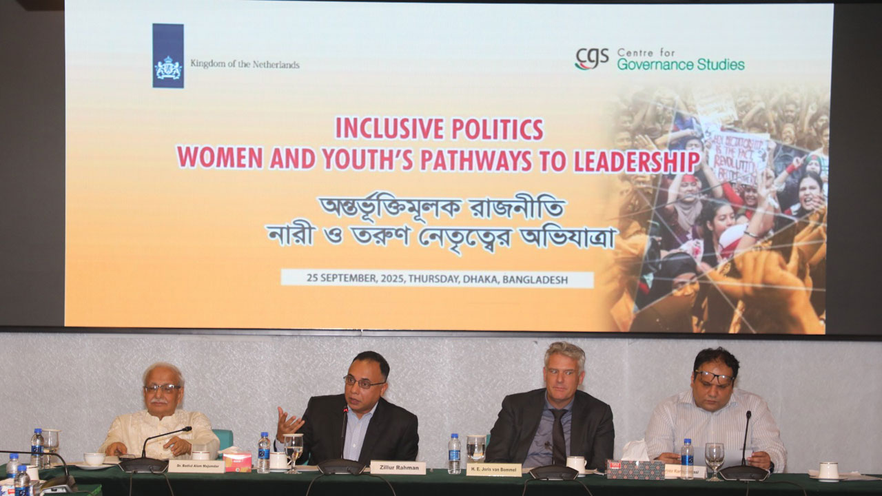 সংলাপে সভাপতিত্ব করেন সিজিএস-এর প্রেসিডেন্ট জিল্লুর রহমান। তিনি বলেন, আন্দোলনের সময় যে নারী ও তরুণরা মুখ্য ভূমিকা রেখেছেন তার মধ্যে কিছু তরুণ সামনে এগিয়ে এসেছেন। কিন্তু সামগ্রিকভাবে বাংলাদেশের তরুণ সমাজ বা মেয়েরা যারা পুলিশের ট্যাংকের সামনে দাঁড়িয়েছিল এই পরিবর্তন তাদের শেষ পর্যন্ত হতাশ করেছেন বলে আমার মনে হয়। বাংলাদেশের মূল শক্তি তরুণরা, বাংলাদেশ এখন একটি গুরুত্বপূর্ণ সময়ে আছে। পরিবর্তনের এক বছর হয়েছে কিন্তু ফলাফল আশাব্যাঞ্জক নয়।