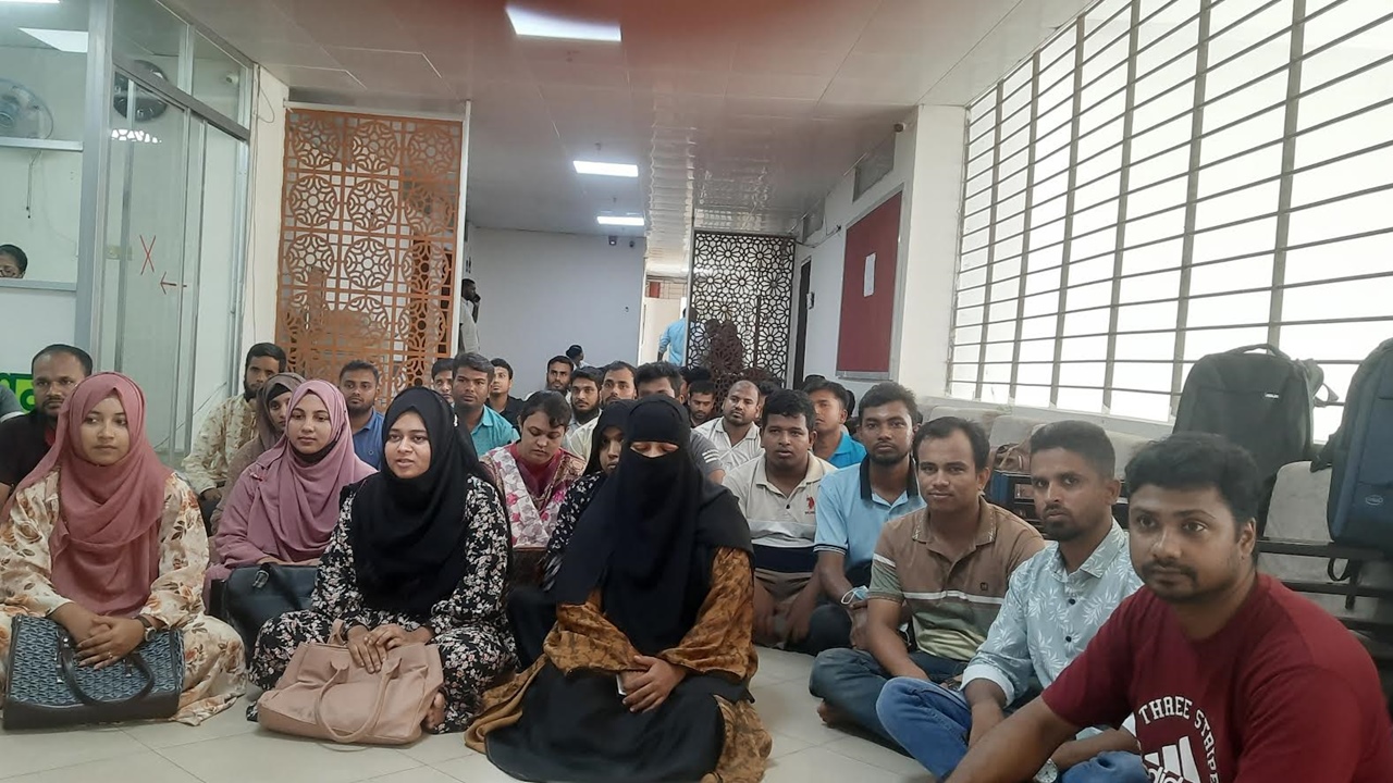 বুধবার (২৫ সেপ্টেম্বর) সকাল থেকে শুরু হওয়া এই কর্মসূচি সন্ধ্যা পর্যন্ত চলেছে। কর্মসূচিতে অংশ নিয়ে তারা কর্মকর্তাদের অবরুদ্ধ করে রাখেন। বেতন না পাওয়া পর্যন্ত এই কর্মসূচি চলমান থাকবে বলে আন্দোলনকারীরা ঘোষণা দেন।