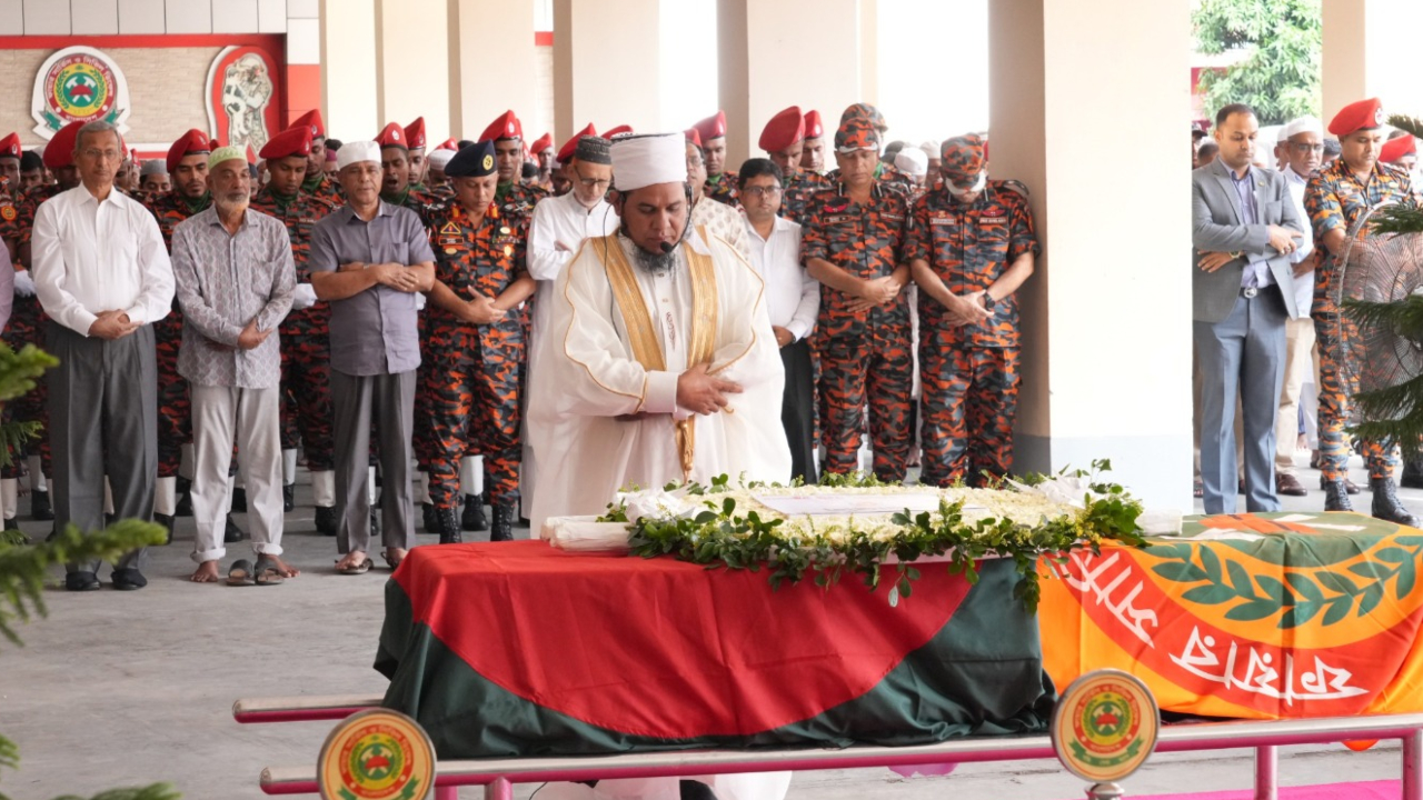 শনিবার (২৭ সেপ্টেম্বর) দুপুর ২টা ৩০ মিনিটে ফায়ার সার্ভিস ও সিভিল ডিফেন্স অধিদপ্তর প্রাঙ্গণে তার জানাজা অনুষ্ঠিত হয়।