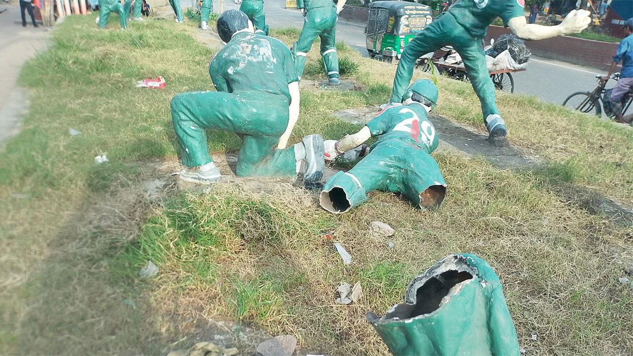 স্টেডিয়াম এলাকায় ক্রিকেটারদের স্ট্যাচু ভাঙচুর