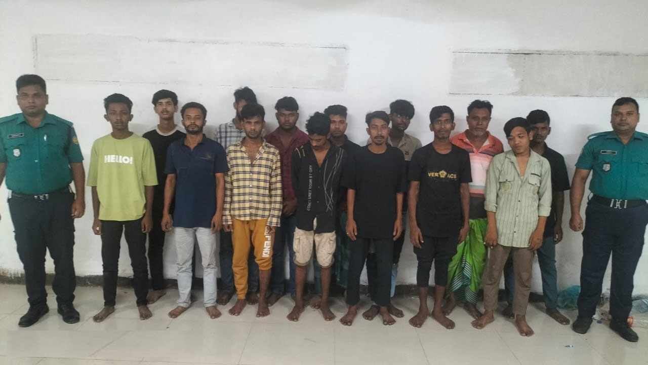 যাদের গ্রেপ্তার করা হয়েছে তারা হলেন— নুর মোহাম্মদ (৫০), বাদশা (৩০), তাসকিন (২৬), নাদিম (৪৬), ফাইজুল হাসান (২০), মামুন (২৪), জুম্মান (২৬), হৃদয় হোসেন (১৮), শামীম হোসেন (২০), আজিজুল হক (৩০), রুহুল আমিন (২০), বাদশা (১৯), শুভ (২৩) ও মহিনুল ইসলাম শাফিন (২০)।