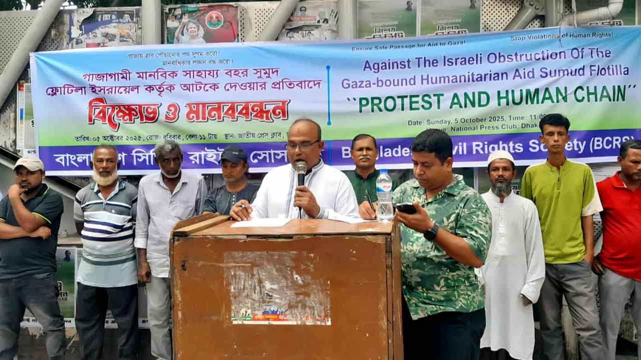 গাজাগামী আন্তর্জাতিক ত্রাণবাহী নৌবহর ‘সুমুদ ফ্লোটিলা’ ইসরায়েলি বাহিনী আটকে দেওয়ার ঘটনায় তীব্র প্রতিবাদ জানিয়েছে বাংলাদেশ সিভিল রাইটস সোসাইটি (বিসিআরএস)।