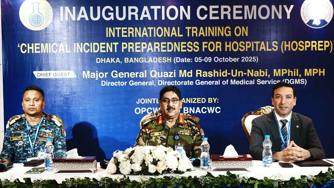 আইএসপিআর জানায়, অর্গানাইজেশন ফর দ্য প্রহিবিশন অব কেমিক্যাল উইপন্সের (ওপিসিডব্লিউ) পরিকল্পনায় এবং বাংলাদেশ জাতীয় কর্তৃপক্ষ রাসায়নিক অস্ত্র কনভেনশনের (বিএনএসিডব্লিউসি) বাস্তবায়নে পাঁচ দিনব্যাপী ‘রাসায়নিক দুর্যোগ-দুর্ঘটনায় হাসপাতালসমূহের প্রস্তুতি’ শীর্ষক একটি আন্তর্জাতিক প্রশিক্ষণ কর্মশালা আজ ঢাকায় গোল্ডেন টিউলিপ দ্য গ্র্যান্ডমার্ক হোটেলে শুরু হয়েছে। সশস্ত্র বাহিনী বিভাগের প্রত্যক্ষ তত্ত্বাবধানে আয়োজিত এ প্রশিক্ষণে বাংলাদেশসহ এশিয়ার ১০টি দেশের ১৮ জন প্রশিক্ষণার্থী এবং ৬ জন দেশি-বিদেশি প্রশিক্ষক অংশগ্রহণ করছে।