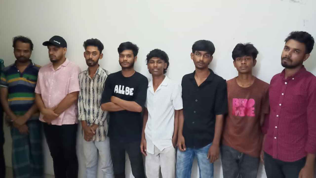 গ্রেপ্তাররা হলেন– মো. অমিত হাসান ওরফে রাব্বি (৩০), মো. আলী আকবর (৪২), মো. শফিকুর রহমান (৩০), সজিব সরদার (১৯), রাজিব তালুকদার (১৯), নূর মোহাম্মদ ওরফে বাপ্পি (১৯), মো. জিহাদ (১৯), মো. কাউছার (২৮), চাঁন মিয়া (২৫) ও মো. ওয়াসিম (২৪)। এসময় তাদের কাছ থেকে একটি চাপাতি ও একটি লোহার রড উদ্ধার করা হয়।