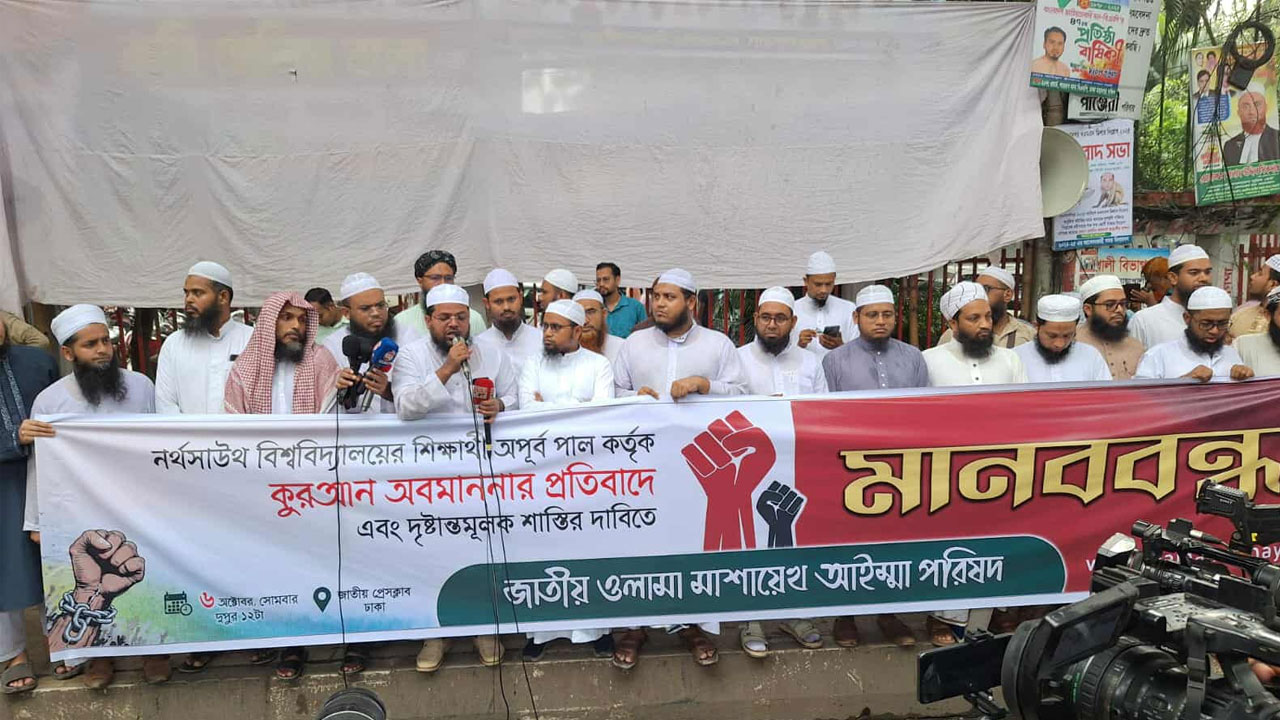 মানববন্ধনে সংগঠনটির সাধারণ সম্পাদক মুফতি রেজাউল করিম আবরার বলেন, আমাদের দেশের বেসরকারি যে ভার্সিটিগুলো রয়েছে সেখানে কাঠামোগত ইসলাম বিদ্বেষ কাজ করা হচ্ছে। যে পা কুরআনে লেগেছে, ওই পা নিয়ে বাংলাদেশের জমিনে আমরা চলতে দেবো না। যে হাত দিয়ে কুরআন অবমাননা করা হবে, বাংলাদেশের মানুষ ওই হাত শরীরে থাকতে দেবে না।