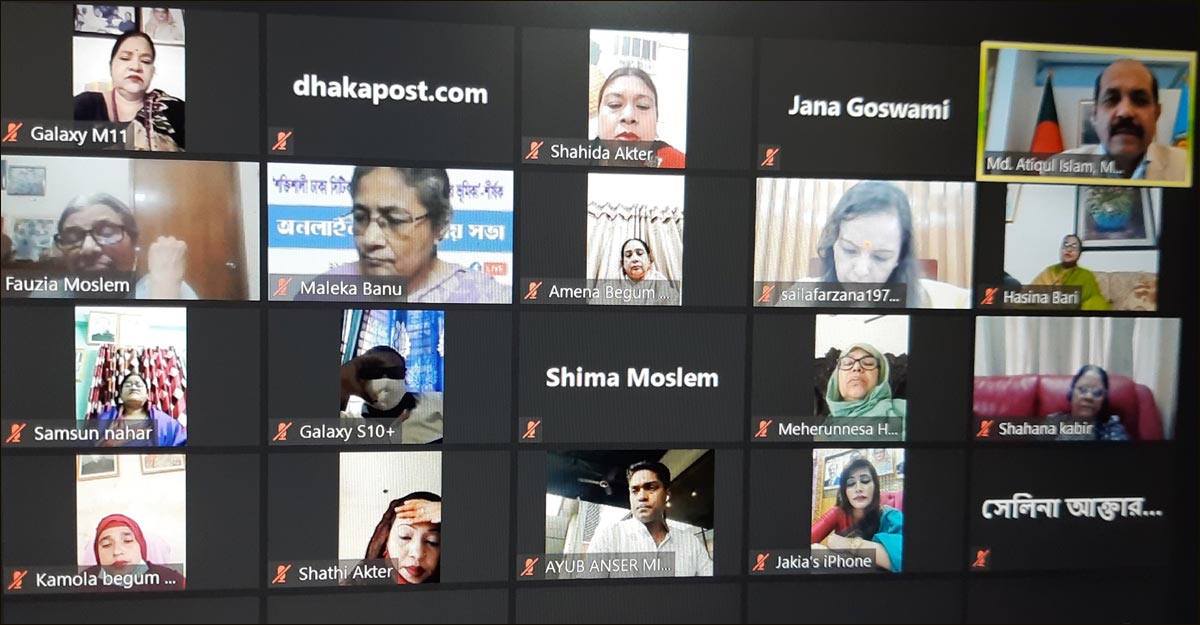 বাংলাদেশ মহিলা পরিষদের উদ্যোগে 'শক্তিশালী ঢাকা সিটি করপোরেশন: নারী কাউন্সিলরদের ভূমিকা' বিষয়ক ভার্চুয়াল মতবিনিময় সভায় সভাপতিত্ব করেন সংগঠনের সভাপতি ডা. ফওজিয়া মোসলেম। এছাড়া স্থানীয় সরকার বিভাগের যুগ্মসচিব (নগর উন্নয়ন-২ অধিশাখা) সায়লা ফারজানা, মহিলা পরিষদের সহ-সভাপতি ও ভারপ্রাপ্ত আন্দোলন সম্পাদক রেখা চৌধুরীসহ ঢাকা উত্তর সিটি করপোরেশনের মহিলা কাউন্সিলররা উপস্থিত ছিলেন।
