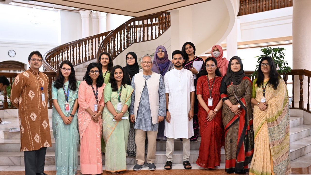বিজয়ী শিক্ষার্থীদের সঙ্গে প্রধান উপদেষ্টার শুভেচ্ছা বিনিময়