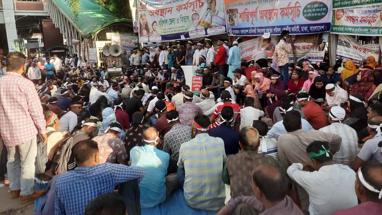 এদিকে, প্রেস ক্লাবের সামনে অবস্থান নেওয়া শিক্ষকরা দাবি করছেন, পুলিশের সঙ্গে ধস্তাধস্তিতে তাদের তিনজন শিক্ষক গুরুতর আহত হয়ে ঢাকা মেডিকেল কলেজ হাসপাতালে চিকিৎসা নিচ্ছেন। ‘আমার শিক্ষক আহত কেন, প্রশাসন জবাব চাই’ স্লোগানে স্লোগানে আন্দোলনরত শিক্ষকরা প্রেস ক্লাব চত্বর মুখর করে রেখেছেন।