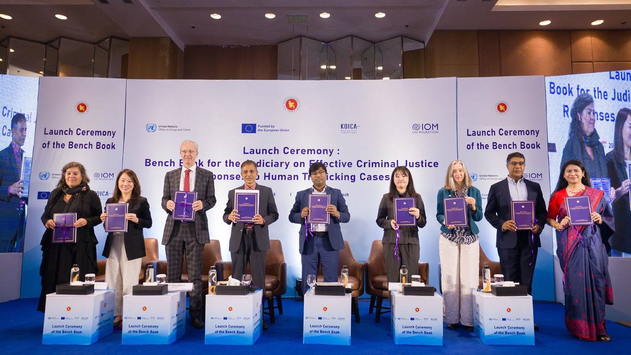 মানব পাচার সংক্রান্ত মামলায় ভুক্তভোগীকেন্দ্রিক বিচারপ্রক্রিয়া শক্তিশালী করা এবং বাংলাদেশের বিচারব্যবস্থাকে আরও কার্যকর করতে ঢাকায় আনুষ্ঠানিকভাবে উদ্বোধন করা হলো ‘মানব পাচার মামলায় কার্যকর ফৌজদারি বিচারিক প্রক্রিয়া’ বিষয়ক বেঞ্চবুক। আইন, বিচার ও সংসদ বিষয়ক মন্ত্রণালয়, আইওএম ও ইউএনওডিসির সহযোগিতায় প্রণীত এই প্রকাশনাটি বিচারকদের জন্য ব্যবহারিক দিকনির্দেশনা হিসেবে কাজ করবে।
