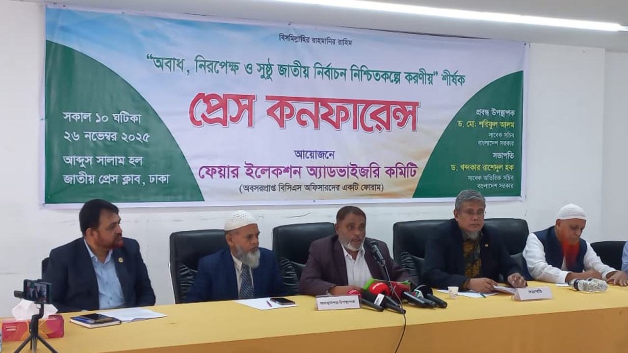 সংবাদ সম্মেলনে ফেয়ার ইলেকশন অ্যাডভাইজরি কমিটির সভাপতি ও সরকারের সাবেক অতিরিক্ত সচিব ড. খন্দকার রাশেদুল হকসহ অন্যান্যরা উপস্থিত ছিলেন।
