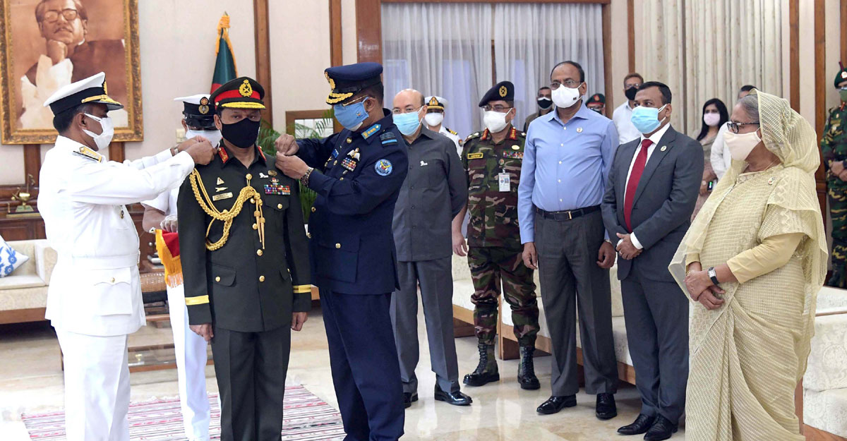 প্রধানমন্ত্রীর সহকারী প্রেস সচিব এমএম ইমরুল কায়েস জানান, র্যাঙ্ক ব্যাজ পরানোর পর প্রধানমন্ত্রী শেখ হাসিনা নব-নিযুক্ত সেনা প্রধানকে ফুলের তোড়া দিয়ে শুভেচ্ছা জানান এবং তাঁর সফলতা কামনা করেন।