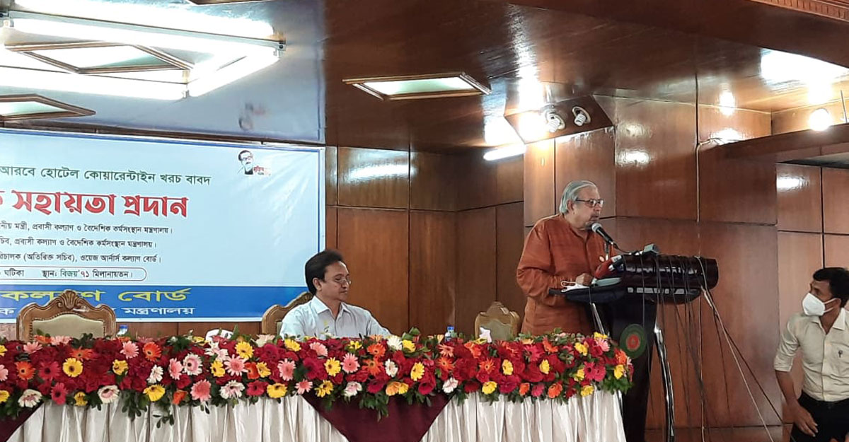 আজ বৃহস্পতিবার (২৪ জুন) ওয়েজ আর্নার্স কল্যাণ বোর্ড কর্তৃক সৌদি আরবে হোটেল কোয়ারেন্টাইন খরচ বাবদ বিশেষ আর্থিক সহায়তা প্রদান অনুষ্ঠানে এমন প্রত্যাশার কথা জানান মন্ত্রী। অনুষ্ঠানে ওয়েজ আর্নার্স কল্যাণ বোর্ড কর্তৃক সৌদি প্রবাসীদের হোটেল কোয়ারেন্টাইন খরচ বাবদ ২২ জনের হাতে ২৫ হাজার টাকার চেক তুলে দেওয়া হয়।