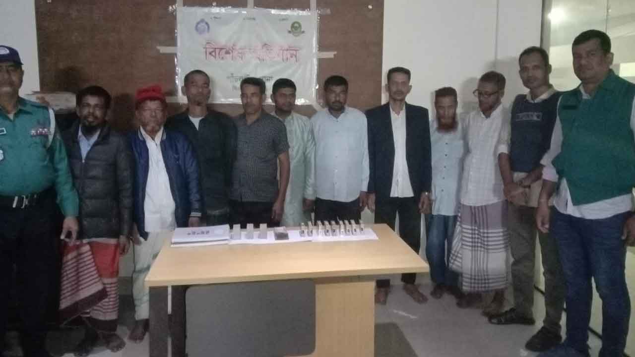গ্রেপ্তাররা হলেন– কাবুল দাশ (৫০), মনজুর আলম (৩৯), মো. মিলন (৪৬), মো. আইয়ুব খান (৫৬), মো. খলিল মিয়া (৫৭), নুরুল ইসলাম (৬০), লিটন আহমেদ (৫২), আহমেদ (৫০) ও আবুল কাশেম (৫২)।