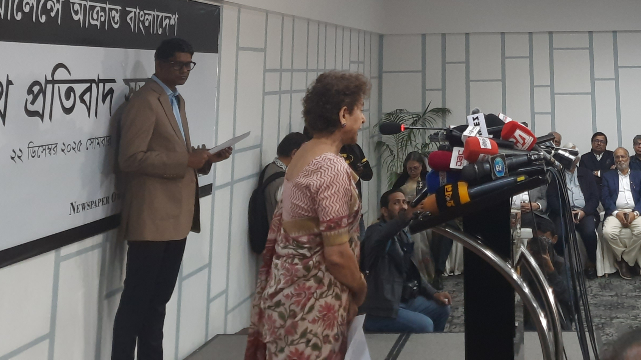 সোমবার (২২ ডিসেম্বর) রাজধানীর প্যান প্যাসিফিক সোনারগাঁও হোটেলে সম্পাদক পরিষদ আয়োজিত মব ভায়োলেন্স বা সংঘবদ্ধ সহিংসতা বিরোধী এক প্রতিবাদ সভায় তিনি এ কথা বলেন।