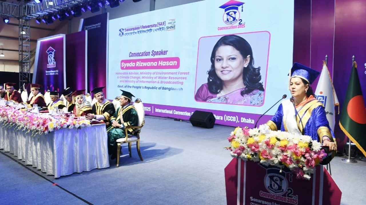 রোববার (২৮ ডিসেম্বর) রাজধানীর আন্তর্জাতিক কনভেনশন সিটি বসুন্ধরায় আয়োজিত সোনারগাঁও ইউনিভার্সিটির দ্বিতীয় সমাবর্তন-২০২৫ এ সমাবর্তন বক্তৃতায় তিনি এসব কথা বলেন।