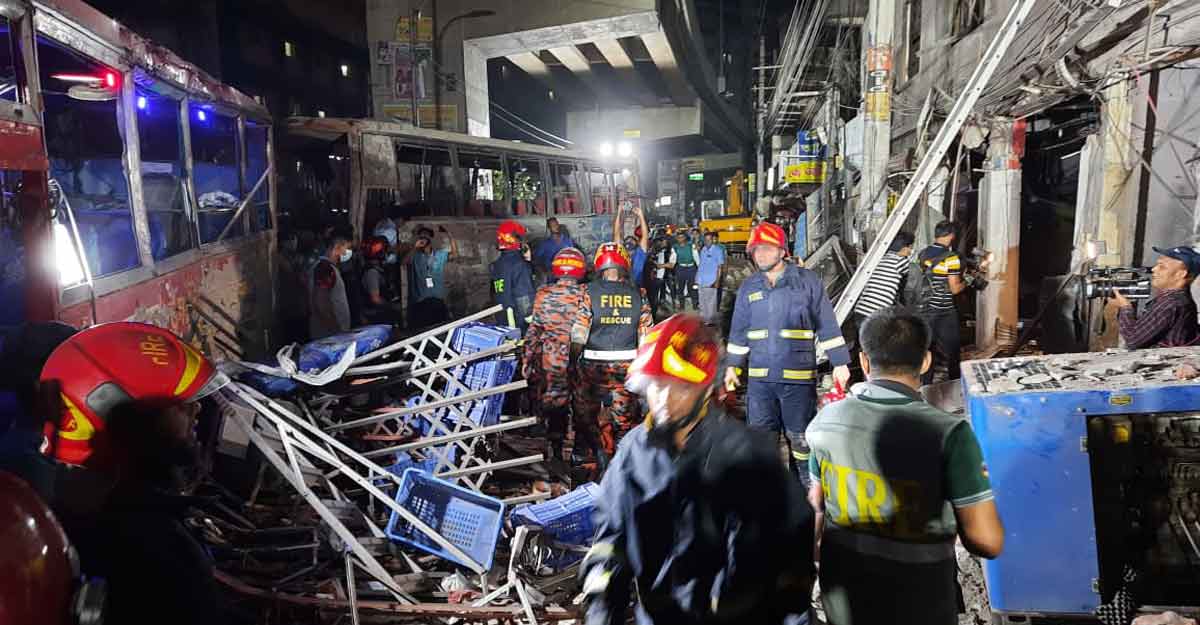 জানা গেছে আহত ও দগ্ধদের ঢাকা কমিউনিটি ক্লিনিক, আদ্ব-দীন হাসপাতাল, শেখ হাসিনা জাতীয় বার্ন ও প্লাস্টিক সার্জারি ইনস্টিটিউট এবং ঢাকা মেডিকেল কলেজ (ঢামেক) হাসপাতালে নেওয়া হয়েছে।