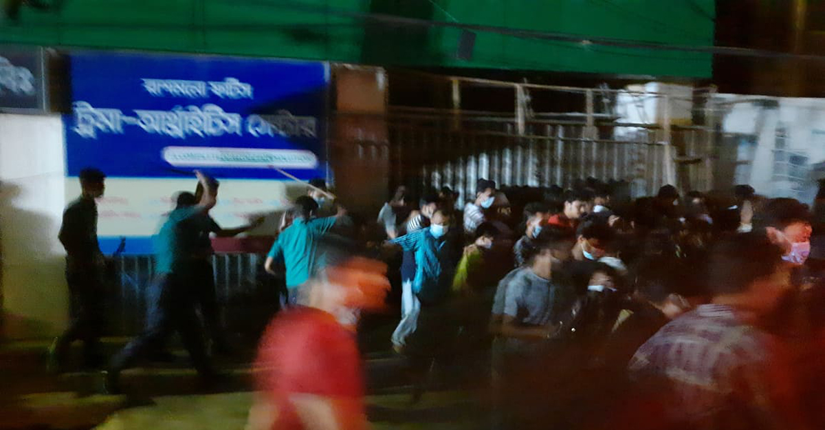 ভিড় এমন পর্যায়ে গিয়ে ঠেকেছে, ফায়ার সার্ভিস ও আইনশৃঙ্খলা বাহিনীর কাজে শেষ পর্যন্ত ব্যাঘাত ঘটার মতো অবস্থা। পুলিশ তাদের সরে যেতে বারবার অনুরোধ করলেও তারা কর্ণপাত করেনি। অবশেষে পুলিশ বাধ্য হয়ে রোববার রাত সাড়ে ৯টার দিকে লাঠিপেটা করে উৎসুক জনতার ভিড় কমিয়েছে। এখনও দফায় দফায় লাঠিপেটা অব্যাহত আছে।
