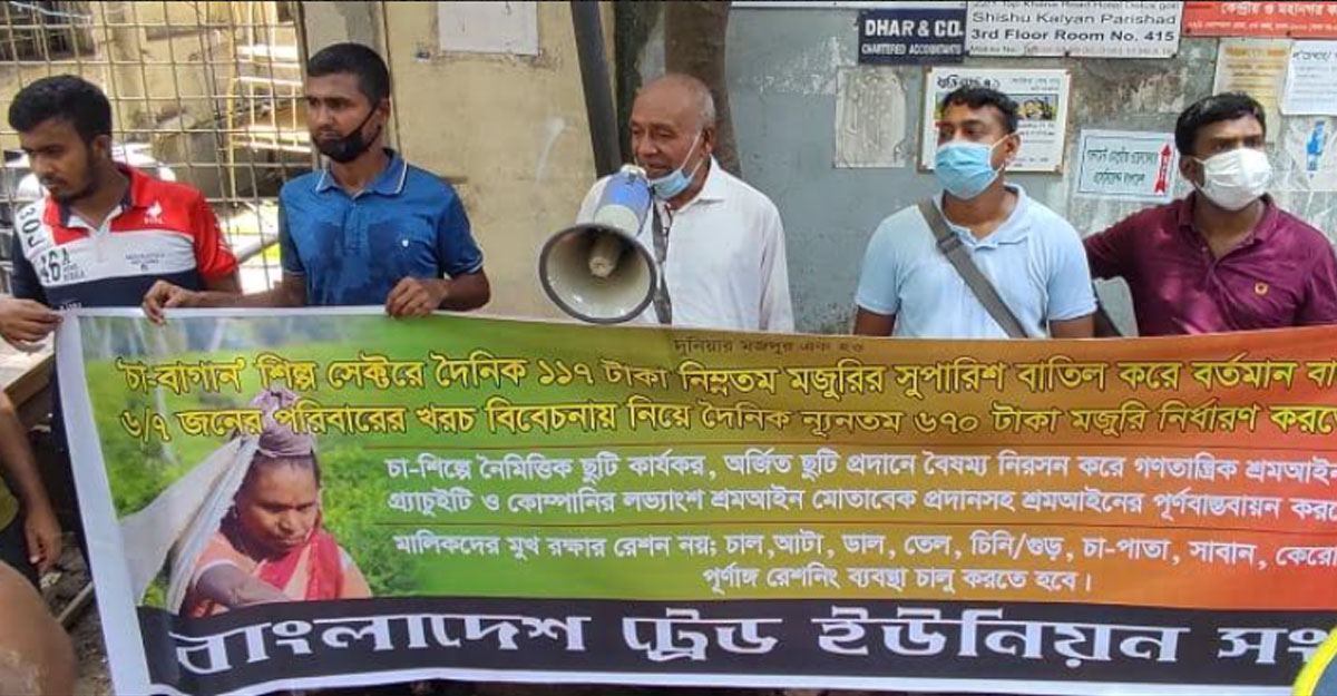 চা শিল্পে করা দৈনিক ১১৭ টাকা নিম্নতম মজুরির সুপারিশ বাতিল করে বর্তমান বাজারদর বিবেচনায় ৬৭০ টাকা দৈনিক মজুরি নির্ধারণের দাবি জানিয়েছে বাংলাদেশ ট্রেড ইউনিয়ন সংঘ। সংগঠনটি বলছে, চা শিল্পের ১৬৭ বছরের ইতিহাসে শ্রমিকদের দৈনিক মজুরি ১৬৭ টাকাও হয়নি।