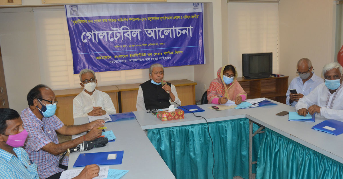 আলোচনা সভায় সভাপতিত্ব করেন বাংলাদেশ ইনস্টিটিউট অব লেবার স্টাডিজের (বিলস) চেয়ারম্যান হাবিবুর রহমান সিরাজ।