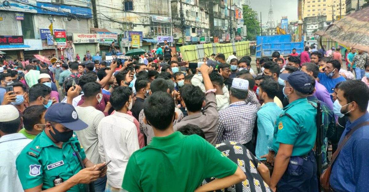 গণপরিবহন চালুর দাবিতে শ্রমিকদের বিক্ষোভ